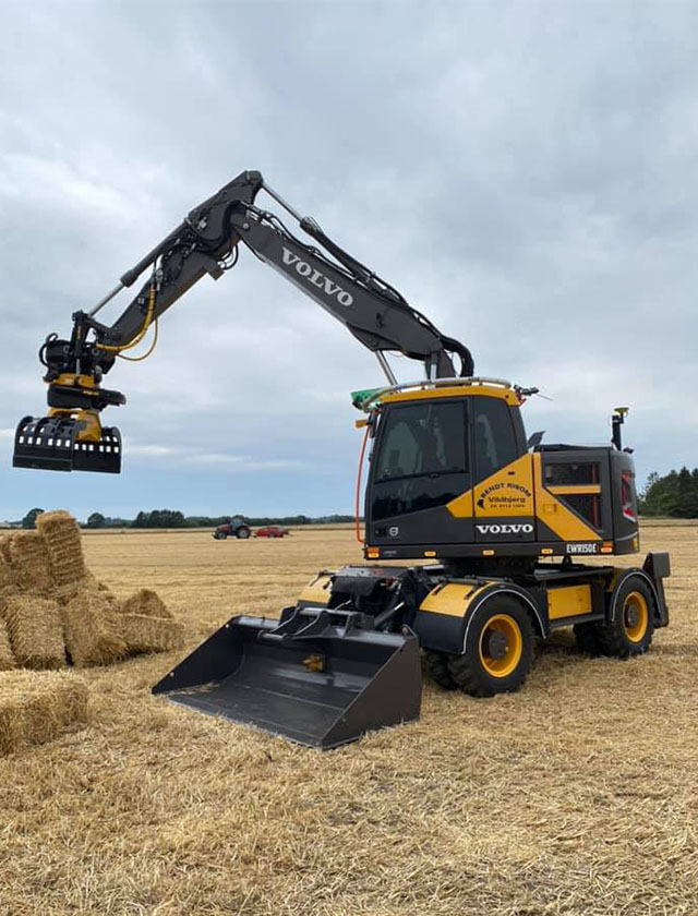 This tiltable BM-quick coupler enables the use of equipment meant for wheel loaders. When using Movtec, the wheeled excavator achieves the highly appreciated functionalities of a backhoe loader while maintaining the great advantages of the wheeled excavator, which increases the machine's flexibility considerably.