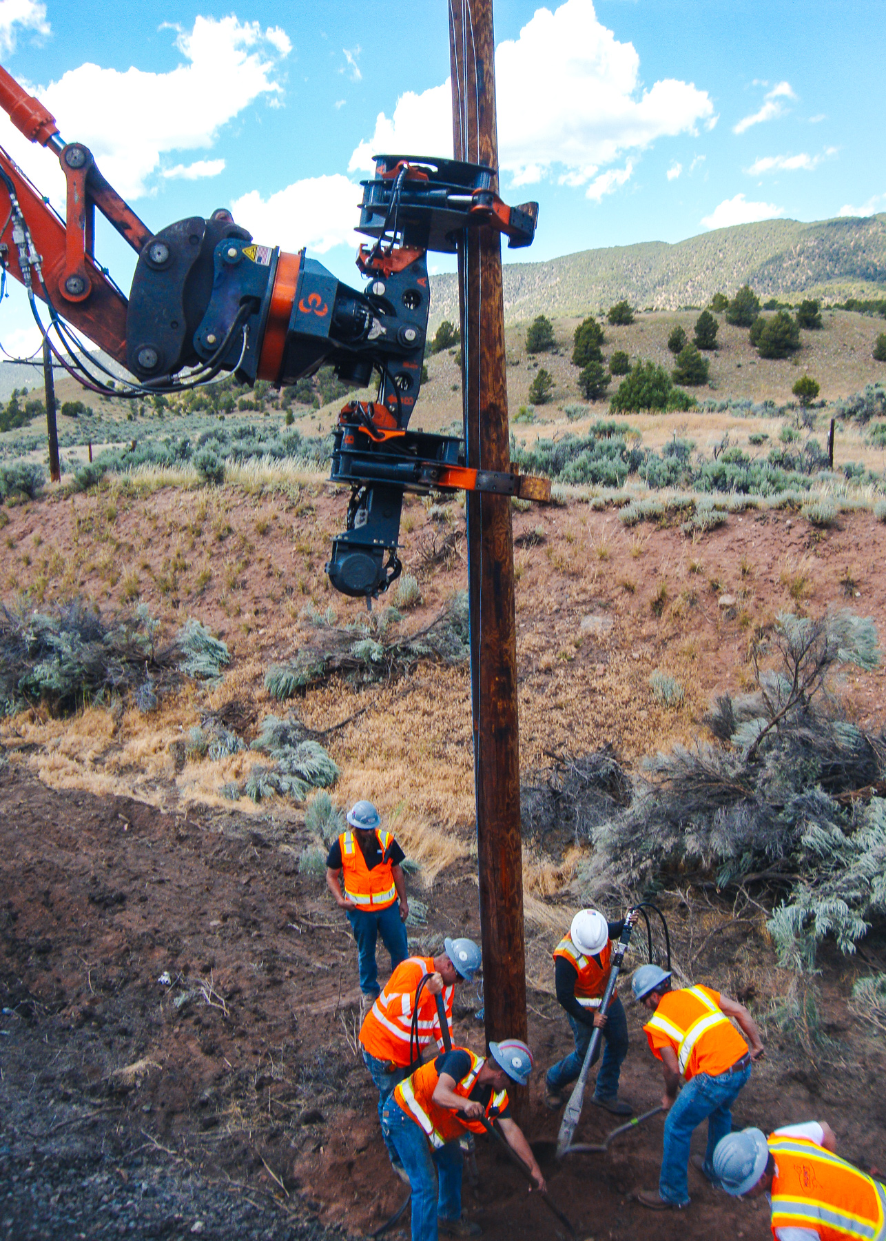 • Utility Arm - Handles pipe, poles, I-beams, and casings in all weather conditions. Fast and efficient in vertical applications such as utility pole installation.